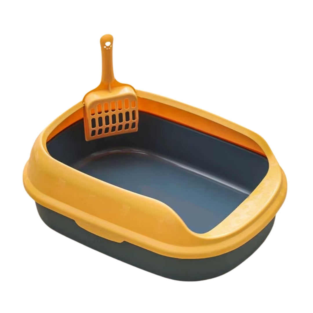 Bac à Litière Ouvert pour Chat – Bord Haut & Pelle Inclus