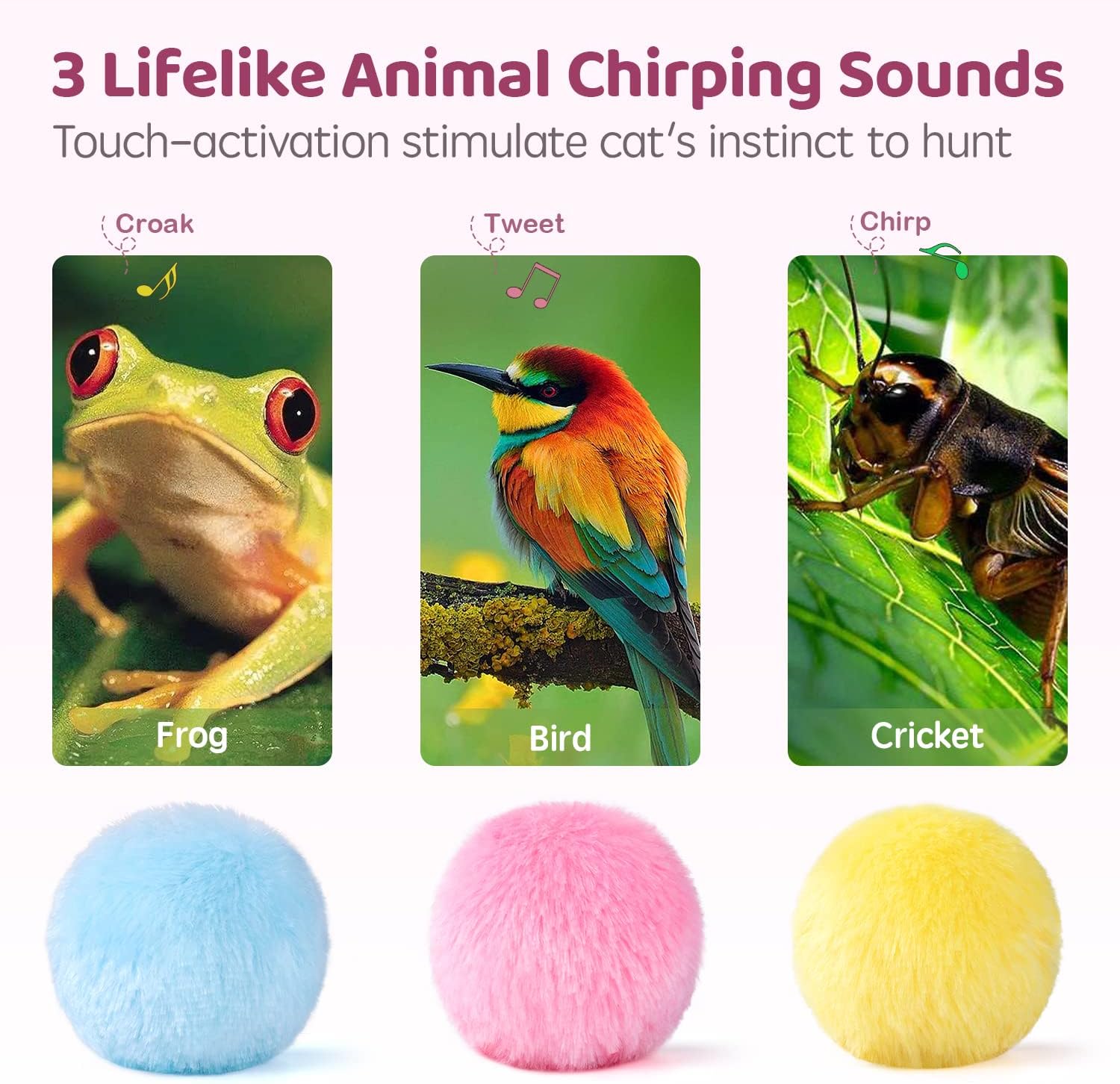 Des plaisirs de jeu sans fin pour les chats – Améliorez le temps de jeu de votre chat avec des balles en peluche moelleuses. Ces jouets pour chats réalistes produisent d'adorables gazouillis d'animaux, invitant votre ami félin à frapper, mordre, mâcher et poursuivre.