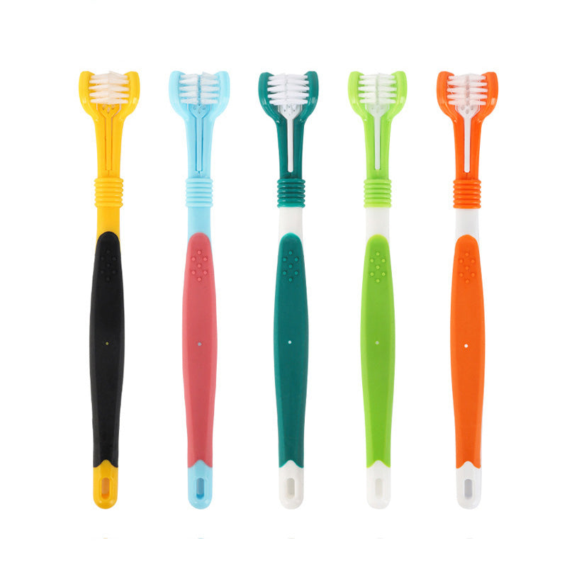 Brosse à dents à trois têtes pour animaux de compagnie – Nettoyage des dents multi-angles pour chiens et chats