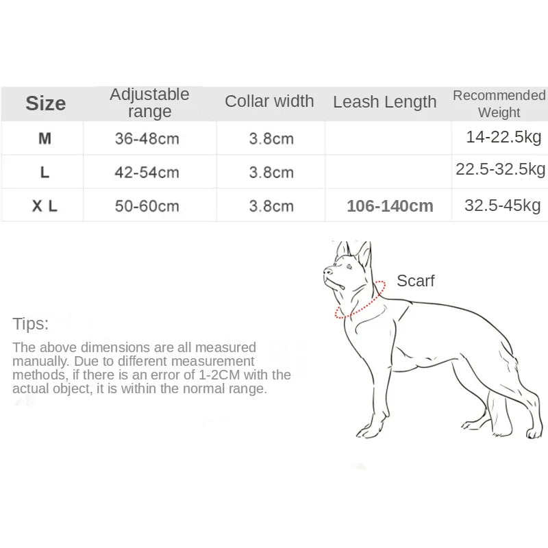 Convient aux chiens de 14 à 35 kg, reportez-vous au tableau des tailles pour sélectionner votre collier.