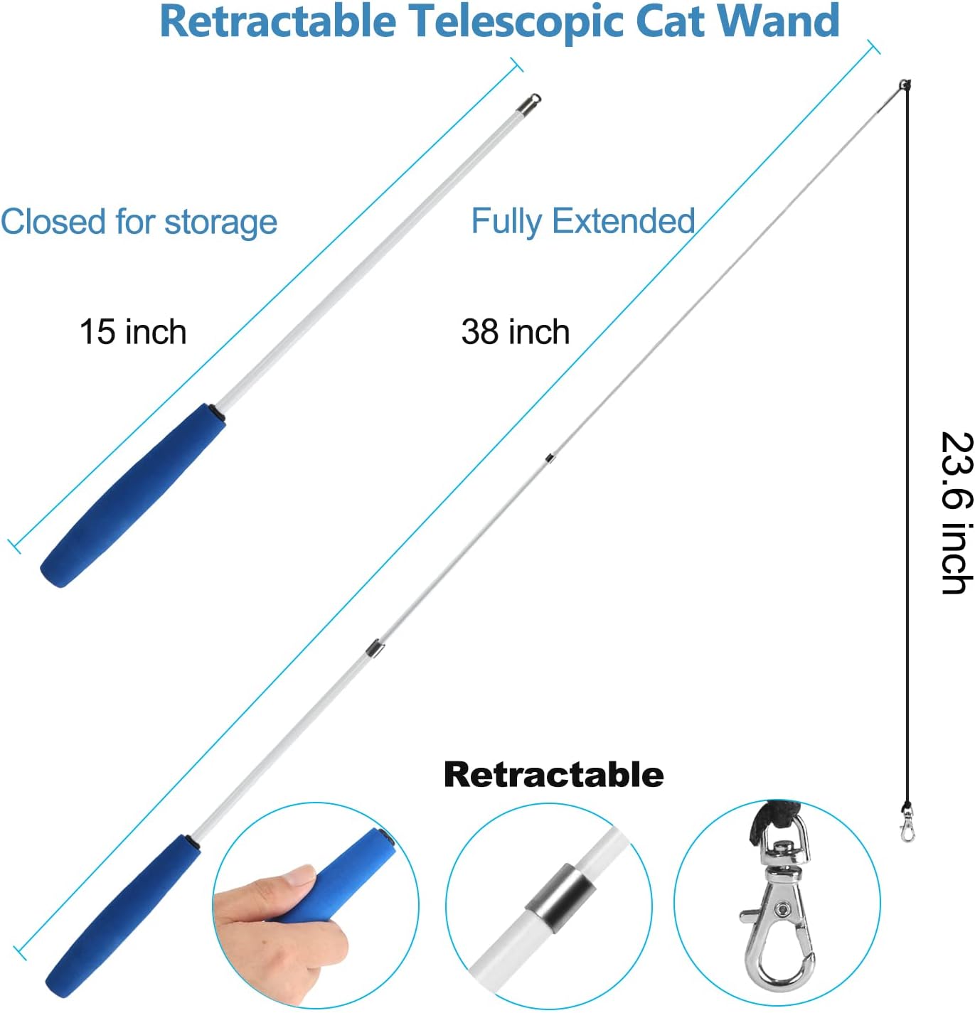 - Baguette télescopique pour un jeu polyvalent : la baguette s'étend de 38 à 99 cm, offrant à votre chat beaucoup d'espace pour courir et bondir. Elle est légère, durable et flexible, ce qui la rend facile à manœuvrer et amusante pour vous et votre chat.