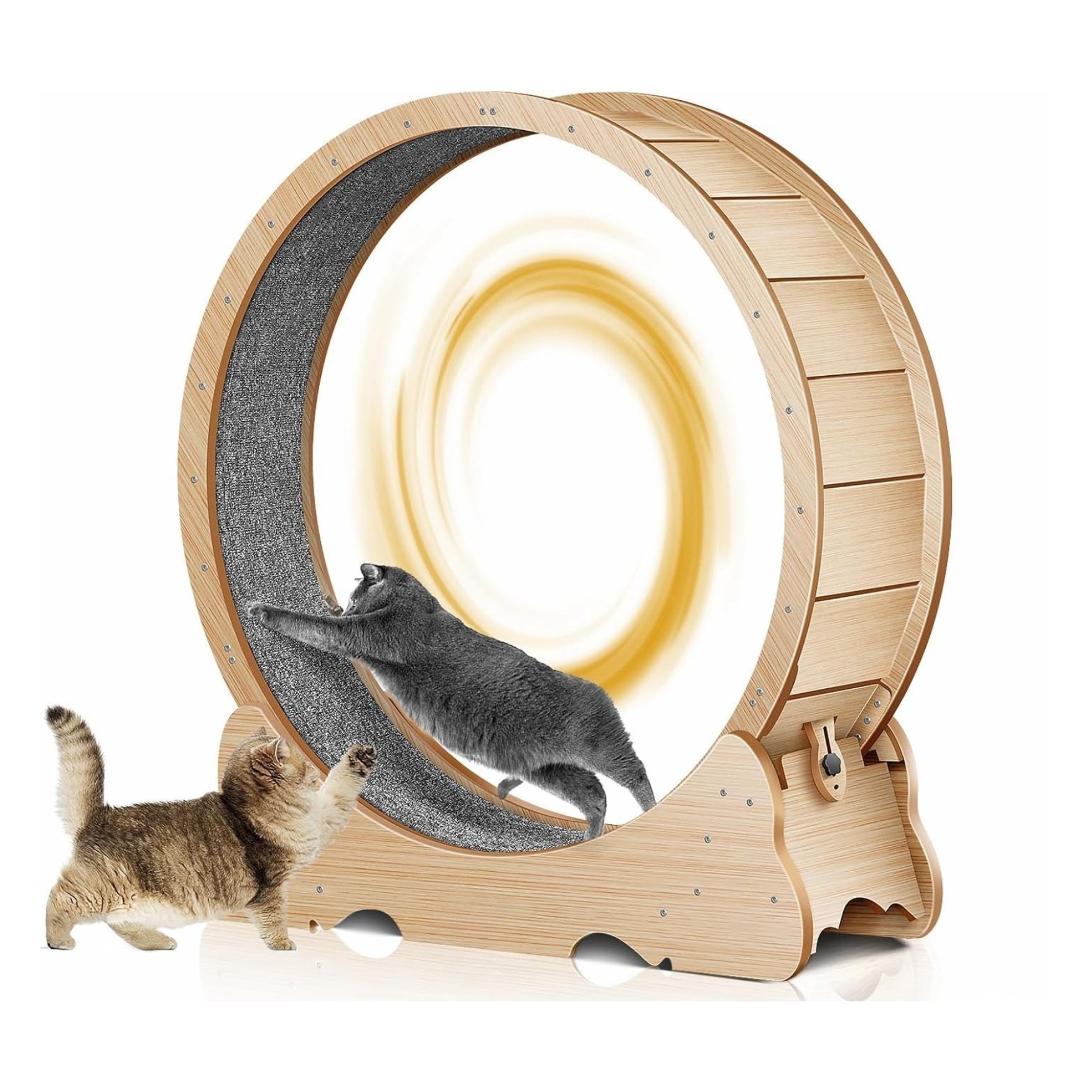 Grande Roue d’Exercice : Dimensions généreuses (110 × 116 × 36,5 cm) permettant aux chats de courir en toute sécurité. Base stable qui empêche le basculement, même lors d’un usage intensif.