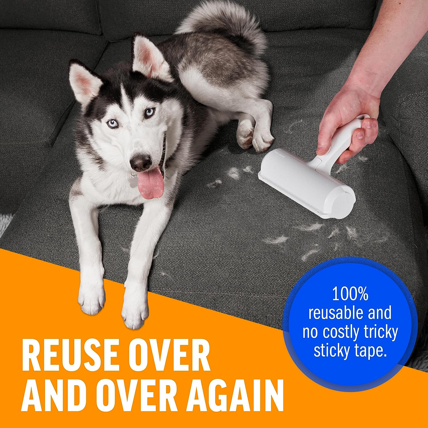 Dissolvant de poils d'animaux et de peluches pour meubles, canapés, tapis et vêtements.