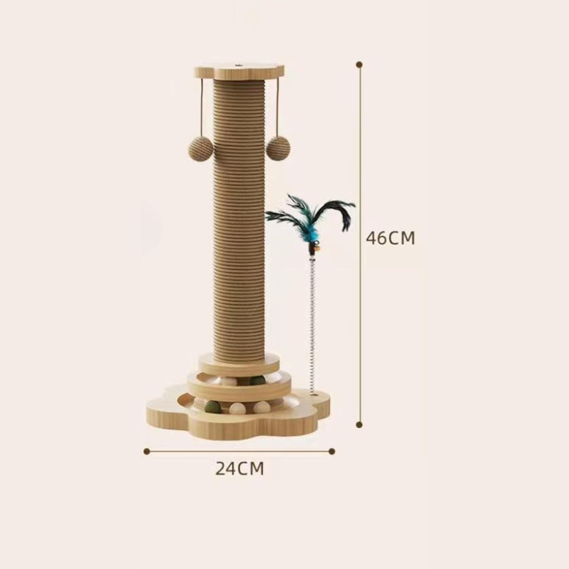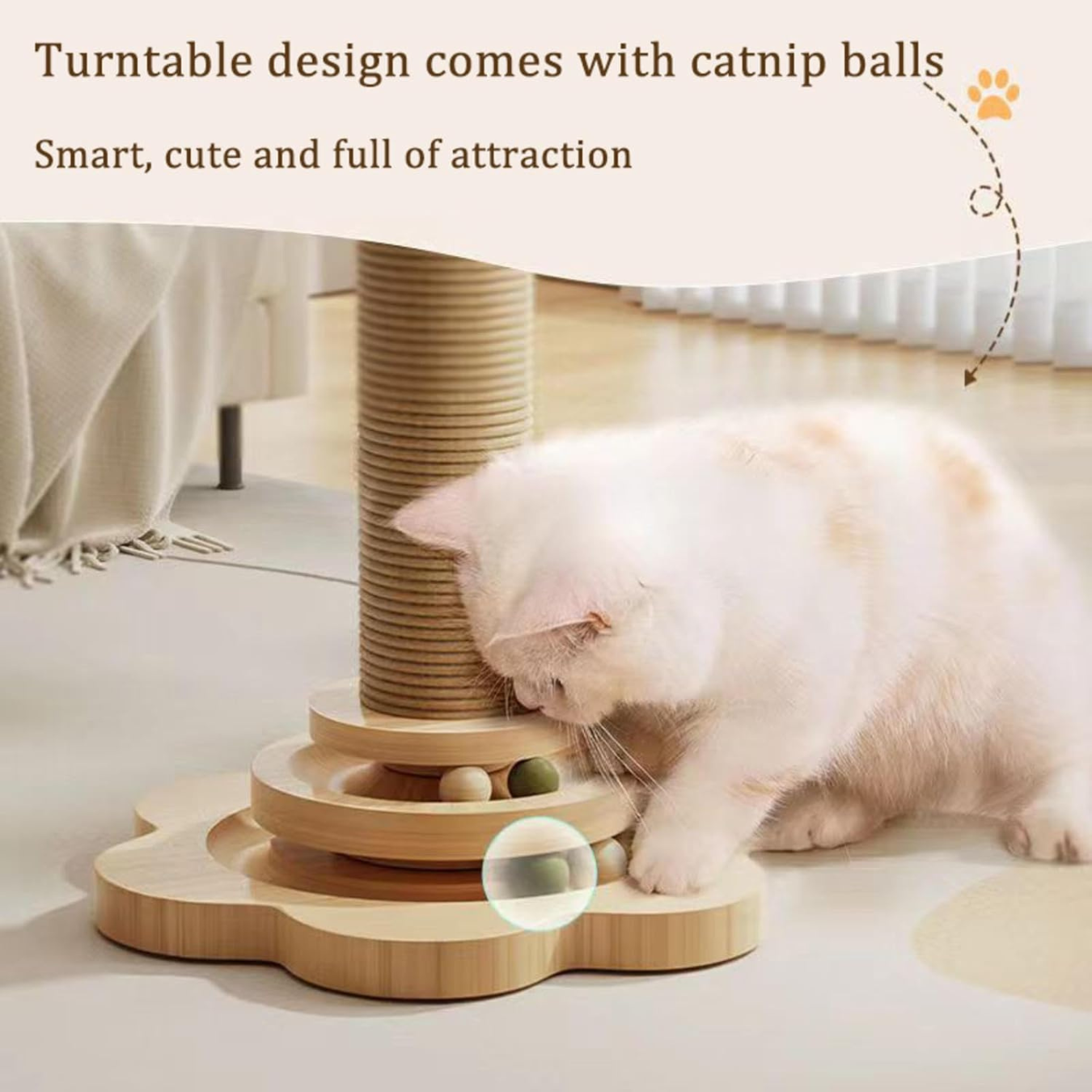 Jouet pour chat en bois avec griffoir en sisal et plateau tournant